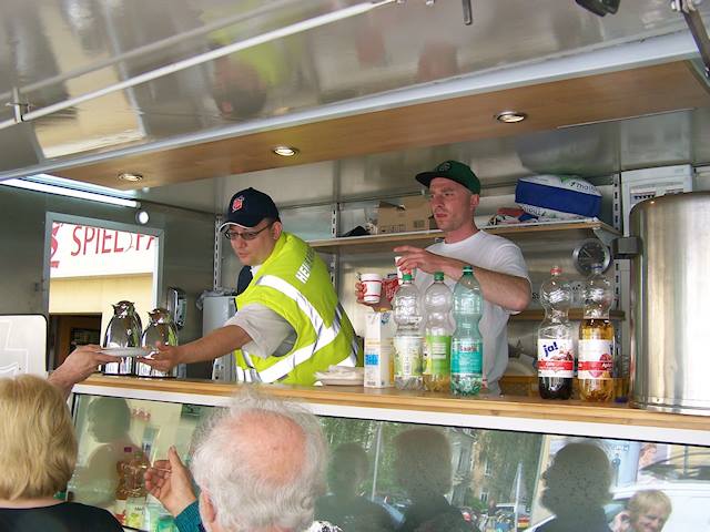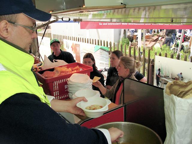 Inzwischen wurde ein zweiter Einsatzwagen aus Berlin, der bislang in Meißen Dienst tat, zur Unterstützung nach Dresden versetzt. Mit zwei Einsatzwagen können wir nun sowohl Laubegast, als auch Zschieren, wo wir im Hof der alten Schule, in der auch der Zschierener Hochwasserstab untergebracht ist, gleichzeitig anfahren. Im Gegensatz zur belebten Österreicher Straße in Laubegast ist der Standort im alten Schulhof von Zschieren eher ruhig, dass heißt, für die Helfer und Einsatzkräfte, denen wir dort dienen, erholsam und entspannend. Vielen Dank für die Unterstützung durch Biertischgarnituren und Stühle und für frischgebackenen Kuchen und belegte Brötchen zur Weitergabe an Einwohner und Helfer. Für Sonnabend (15.6.2013) erwarten wir einen wahren Ansturm auf unseren Versorgungsstützpunkt.